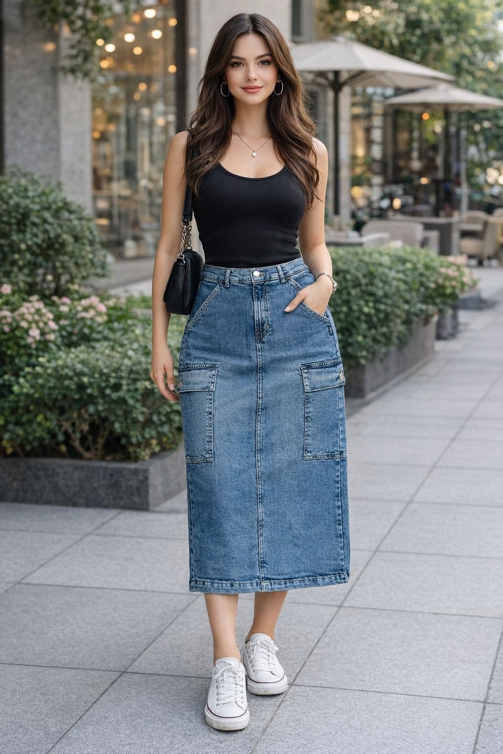 How to Style Your Denim Cargo Skirt