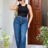 👖 The Perfect Fit: Straight leg jeans are universally flattering – not too tight like skinny jeans, not too wide like flares. They create clean, elegant lines that work for every body type and every occasion.