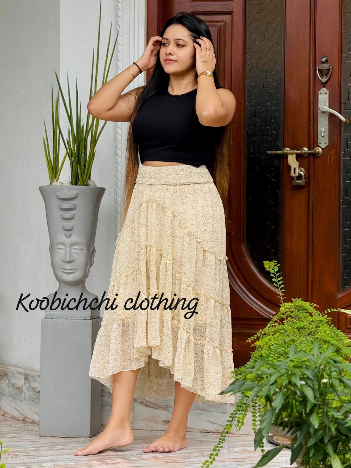 Designed with modern elegance in mind, the skirt features a flattering high-waisted silhouette that’s perfect for pairing with crop tops, fitted blouses, or cozy sweaters. Thoughtful details, such as its classic button and zip closure, front and back pockets, and expertly stitched hemline, add functional and aesthetic appeal seamlessly. Ensure a polished look with every outfit you create.